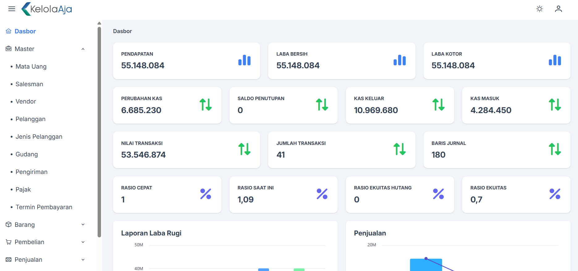 KelolaAja Anda akan mendapatkan lebih dari 35 laporan keuangan yang bisa Anda hasilkan secara instan dalam 1 klik. Kini tidak ada lagi informasi keuangan yang Anda lewatkan dan memudahkan Anda mengambil keputusan yang lebih baik.